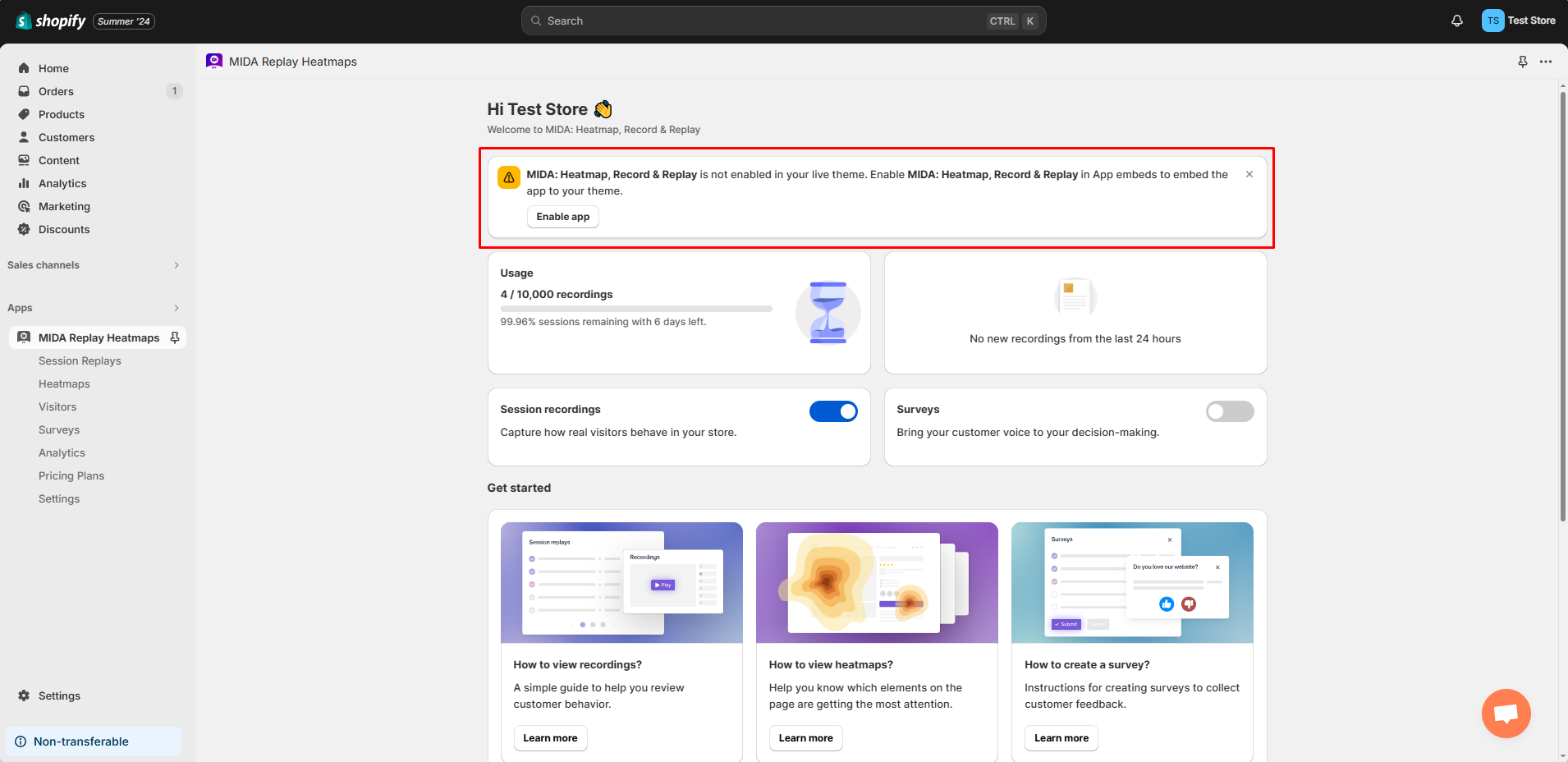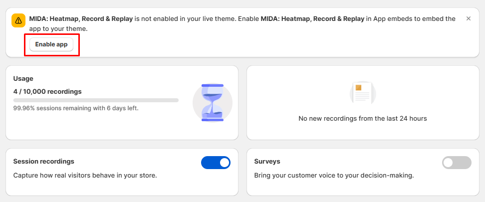 Please note that if you change your theme, you need to enable MIDA app embed again.