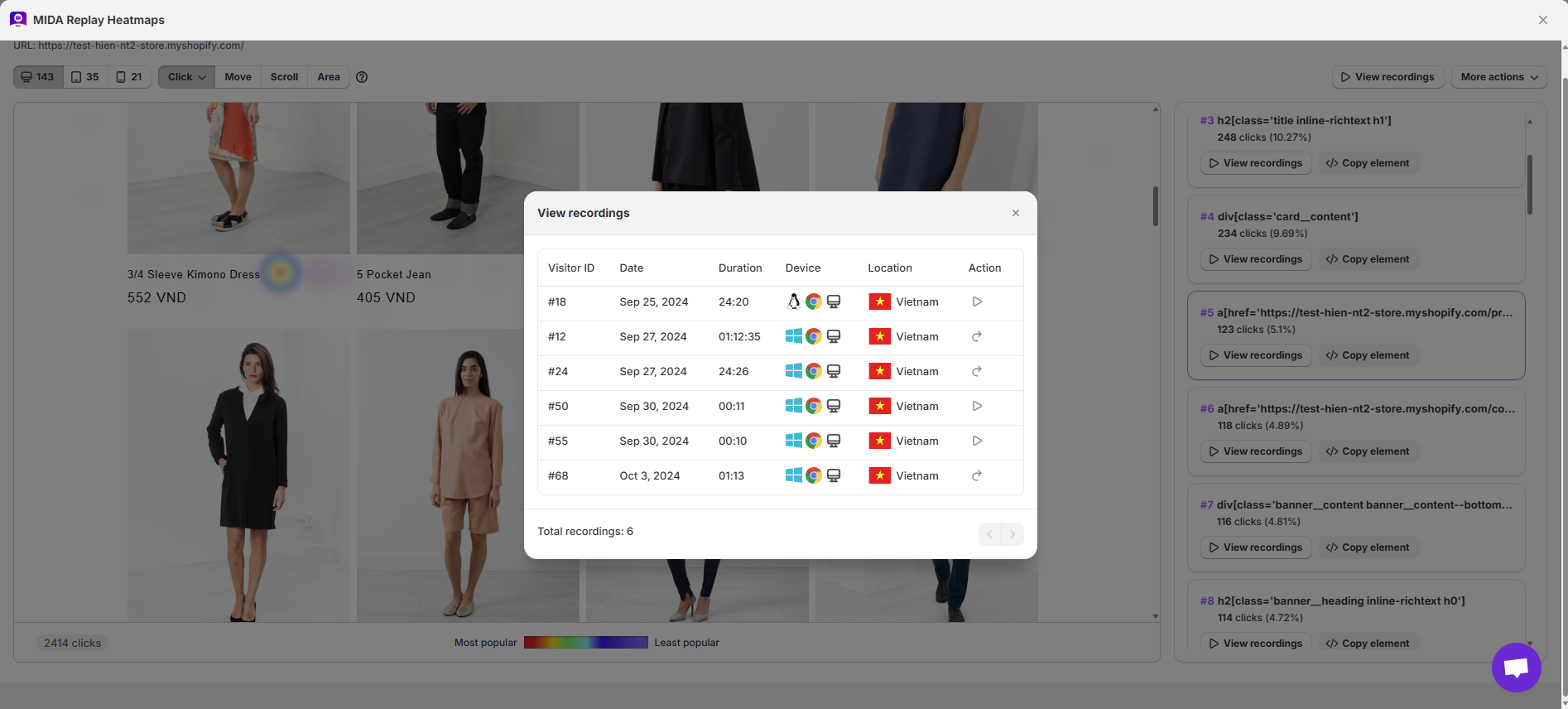 View recordings help you watch recordings where the element was clicked.