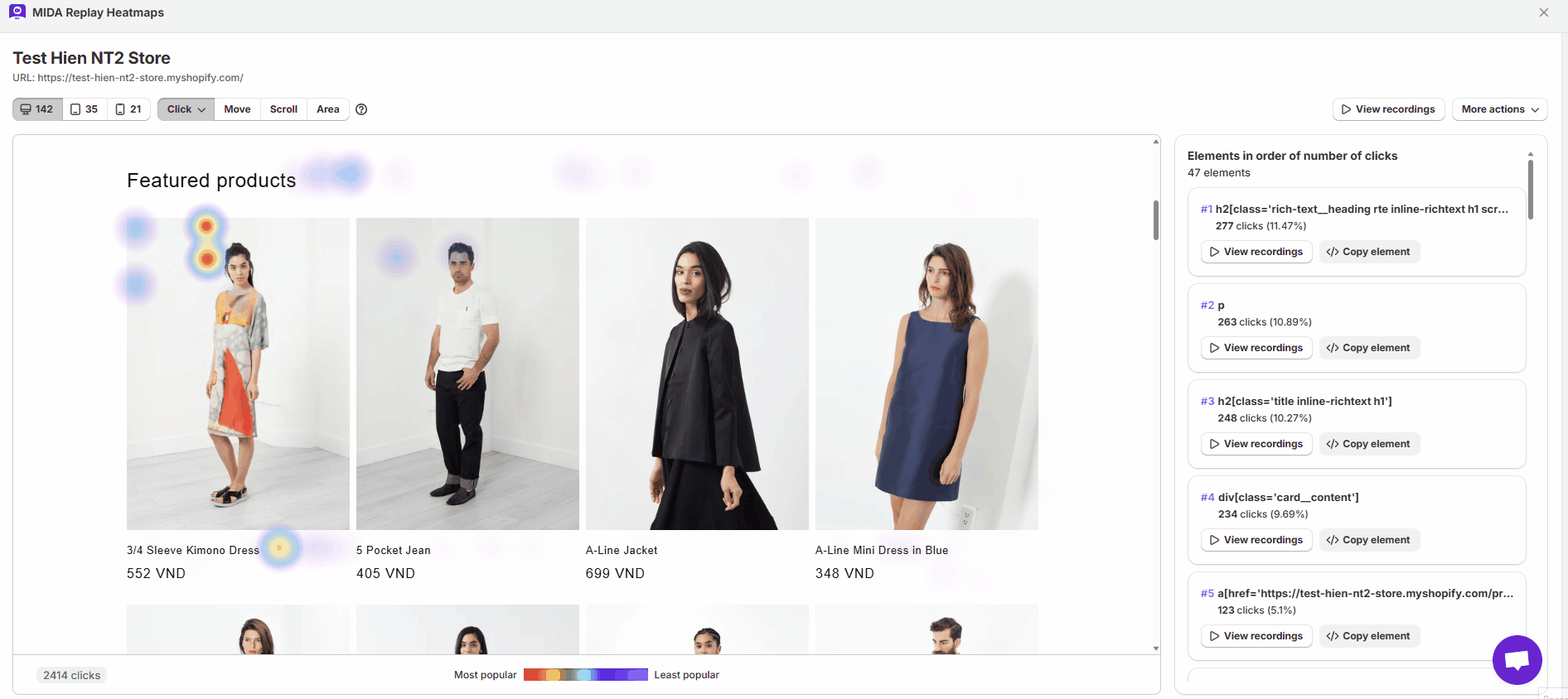 Click Heatmaps can help you determine where your users are clicking, including the nonlinks. MIDA tracks user clicks based on touchpoints.