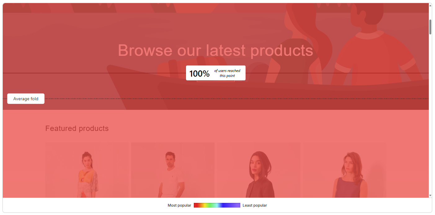 Scroll map also displays the **Average fold**, the content seen above the fold based on the users accessing your site. This fold indicates the average location visible on a webpage before the user starts scrolling.